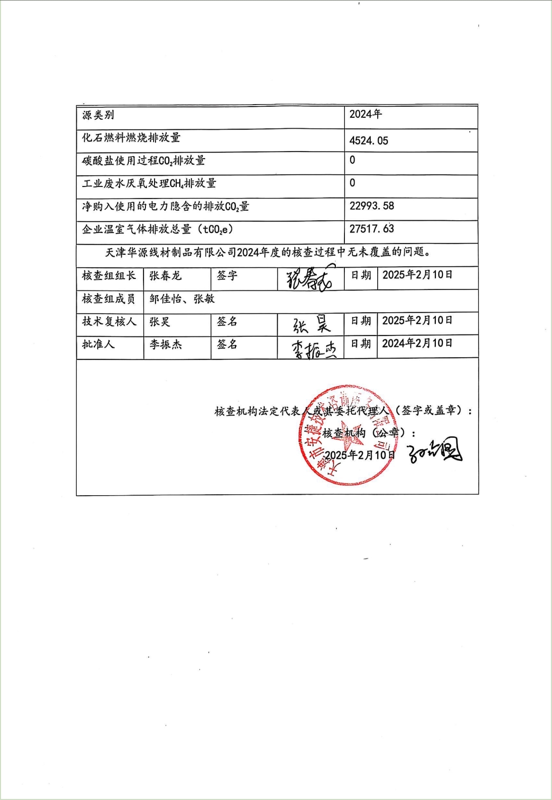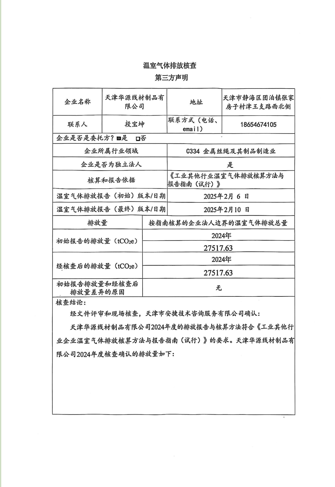温室气体排放核查第三方声明